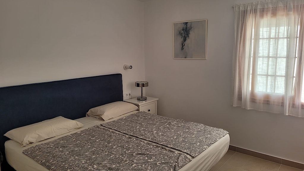Das Schlafzimmer ist mit einem Doppelbett (Breite: 1,80), einer Kommode und einem großen Einbauschrank ausgestattet. Eine weitere Schlafmöglichkeit befindet sich im Wohnzimmer.