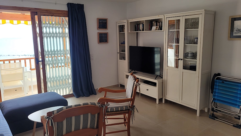 Im Wohnbereich finden Sie einen SAT-TV mit deutschen, englischen und spanischen Programmen, eine Couch und eine sehr gemütliche Essecke.