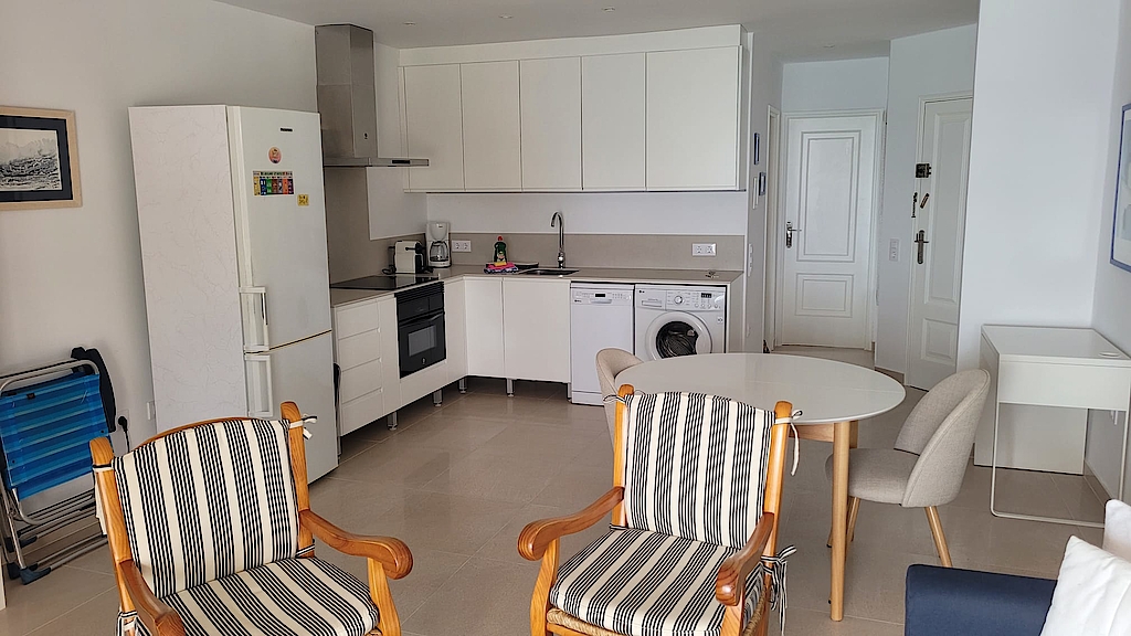 Auf dem schönen Balkon werden Sie den ganzen Tag von der Sonne verwöhnt. Sie haben von dort aus einen herrlichen unverbauten Ausblick auf das Meer. Der Balkon ist ausgestattet mit einem Tisch und 4 Stühlen.