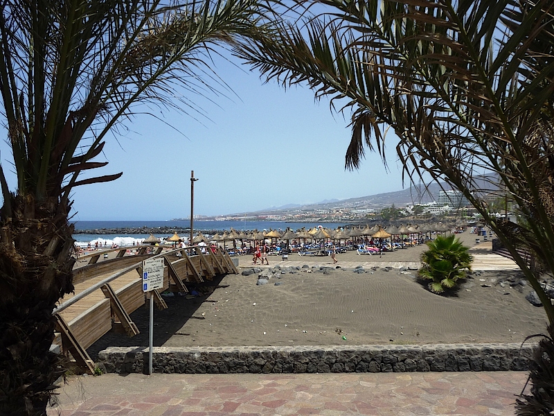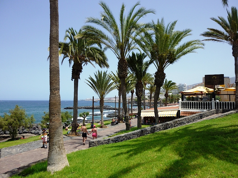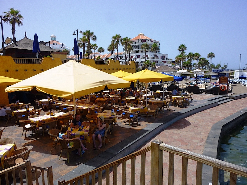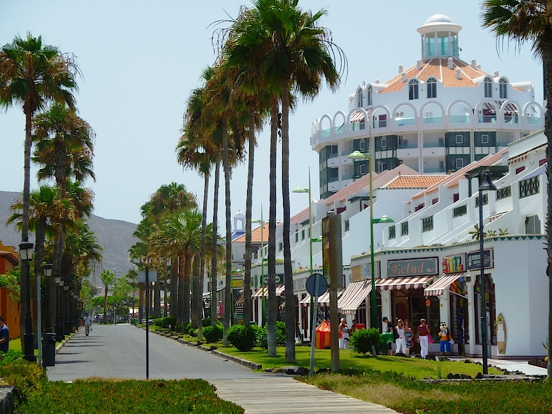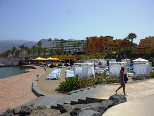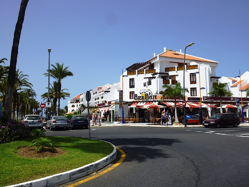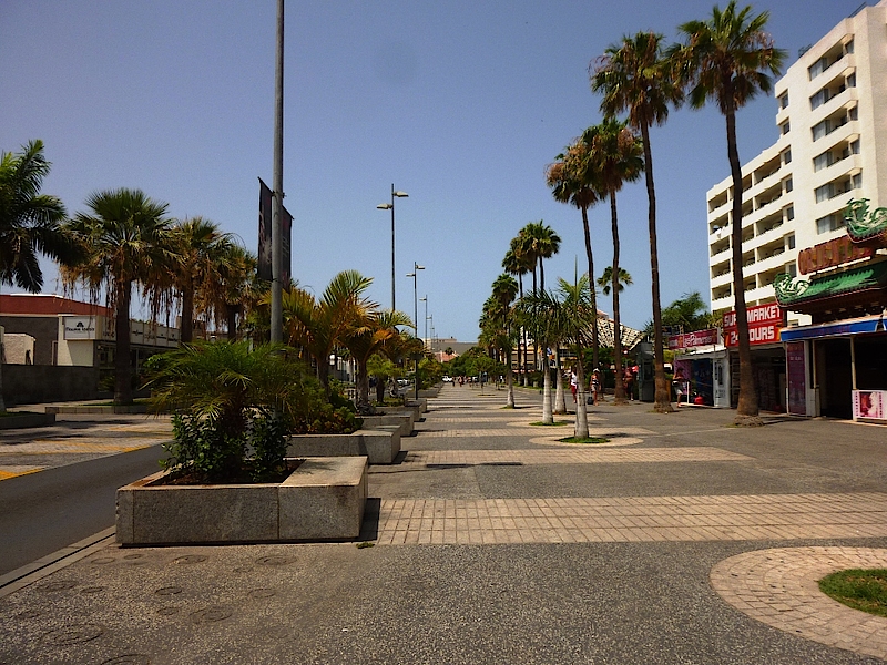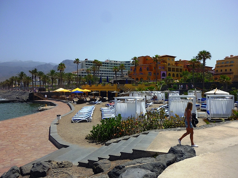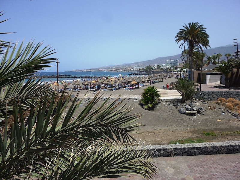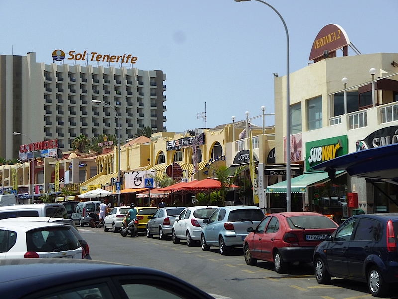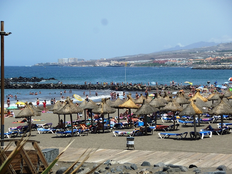 ... dessen Übergang sich von Los Cristianos aus nahtlos vollzieht, ist die eigentlich wahre Touristenhochburg im Südwesten der Insel. Hier kennt das Geschäft mit den Touristen keine Grenzen: Resorts, Shoppingcenter und Bebauung im Hinterland werden immer größer. Die Anzahl von Discos, Clubs, Kneipen, Bars und Restaurants kann sich mit der einer Großstadt messen – das Nachtleben ist ein Anziehungspunkt für das Partyvolk aus aller Welt. Doch bevor die Nacht zum Tag gemacht wird, geht es an den Strand. Der bekannteste Ferienort der Insel verfügt über etliche kleine Strände, alle durch künstliche Riffe und Molen vor der Brandung geschützt.