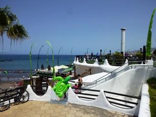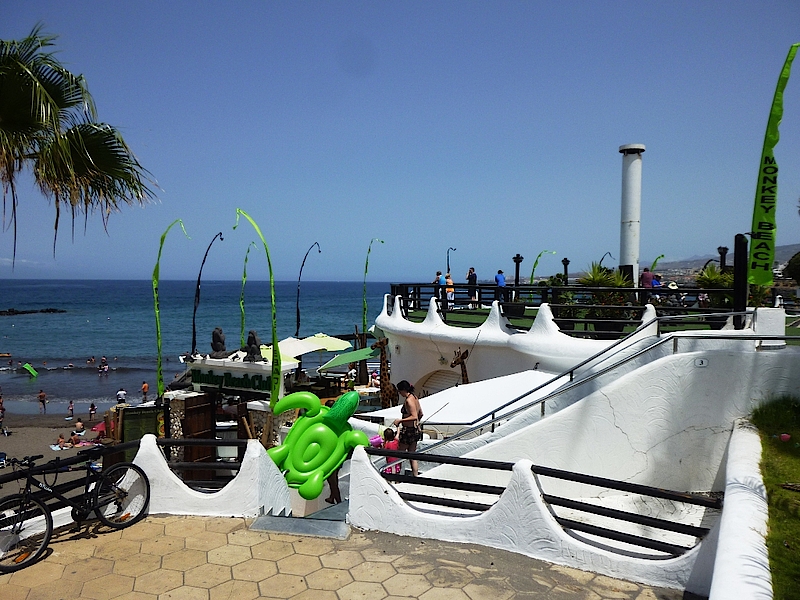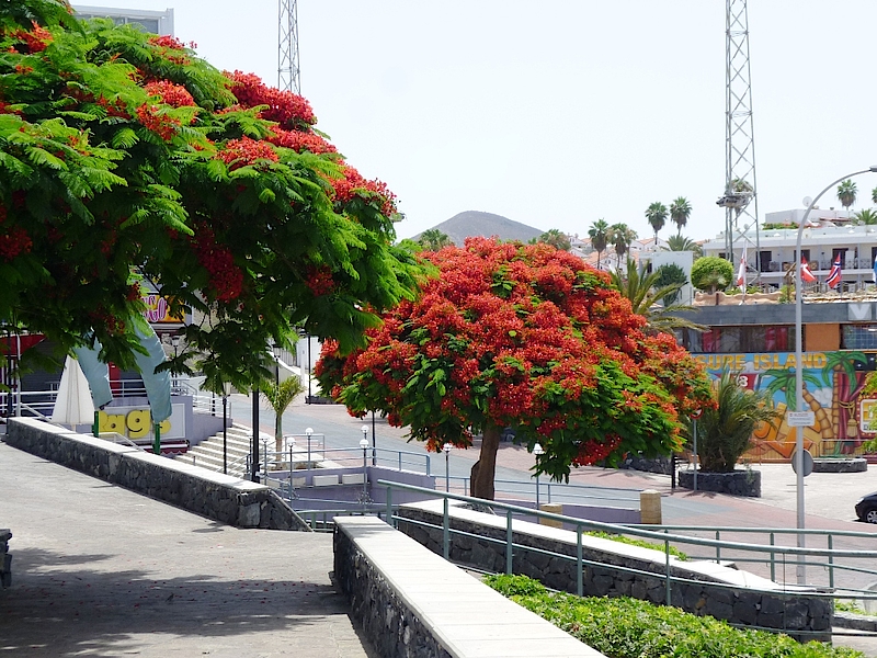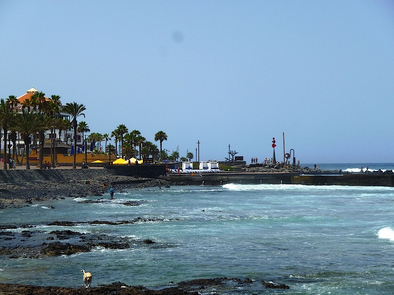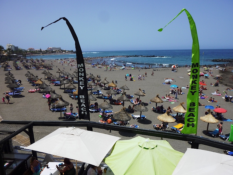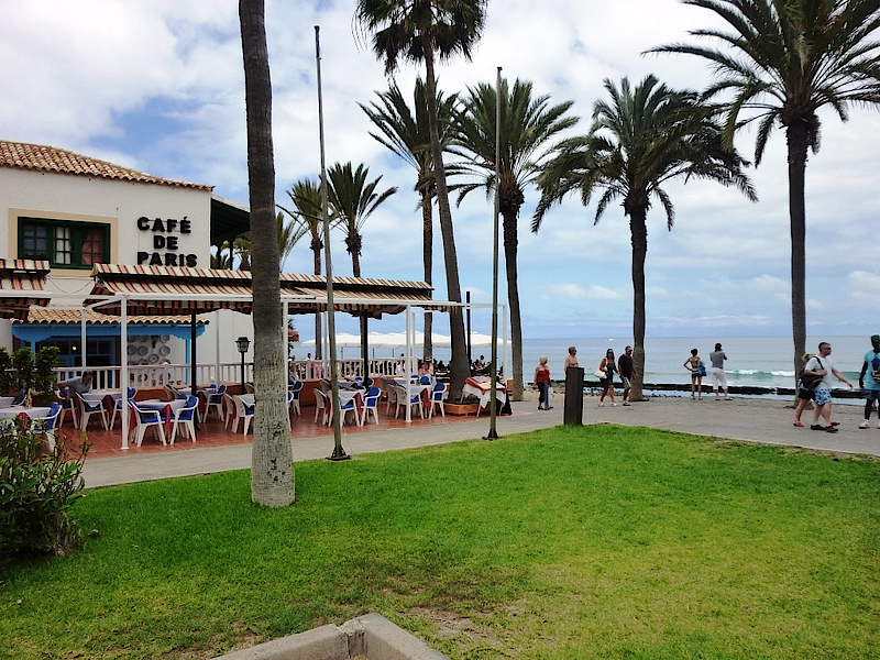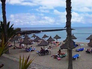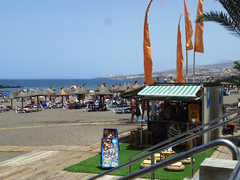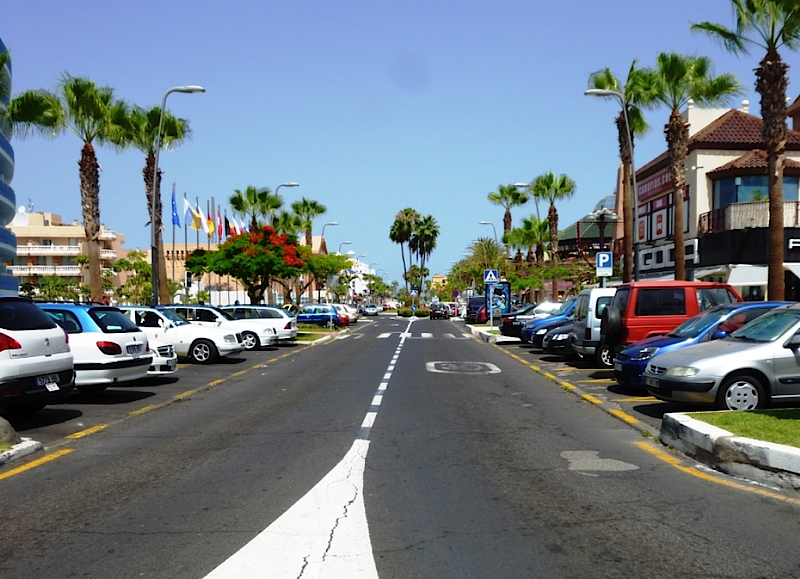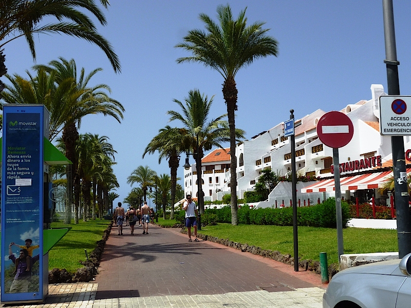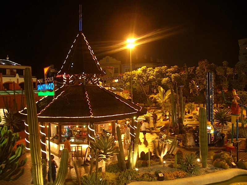 ... dessen Übergang sich von Los Cristianos aus nahtlos vollzieht, ist die eigentlich wahre Touristenhochburg im Südwesten der Insel. Hier kennt das Geschäft mit den Touristen keine Grenzen: Resorts, Shoppingcenter und Bebauung im Hinterland werden immer größer. Die Anzahl von Discos, Clubs, Kneipen, Bars und Restaurants kann sich mit der einer Großstadt messen – das Nachtleben ist ein Anziehungspunkt für das Partyvolk aus aller Welt. Doch bevor die Nacht zum Tag gemacht wird, geht es an den Strand. Der bekannteste Ferienort der Insel verfügt über etliche kleine Strände, alle durch künstliche Riffe und Molen vor der Brandung geschützt.