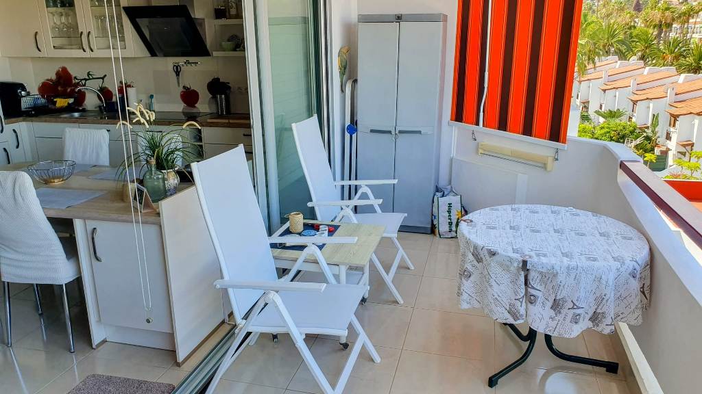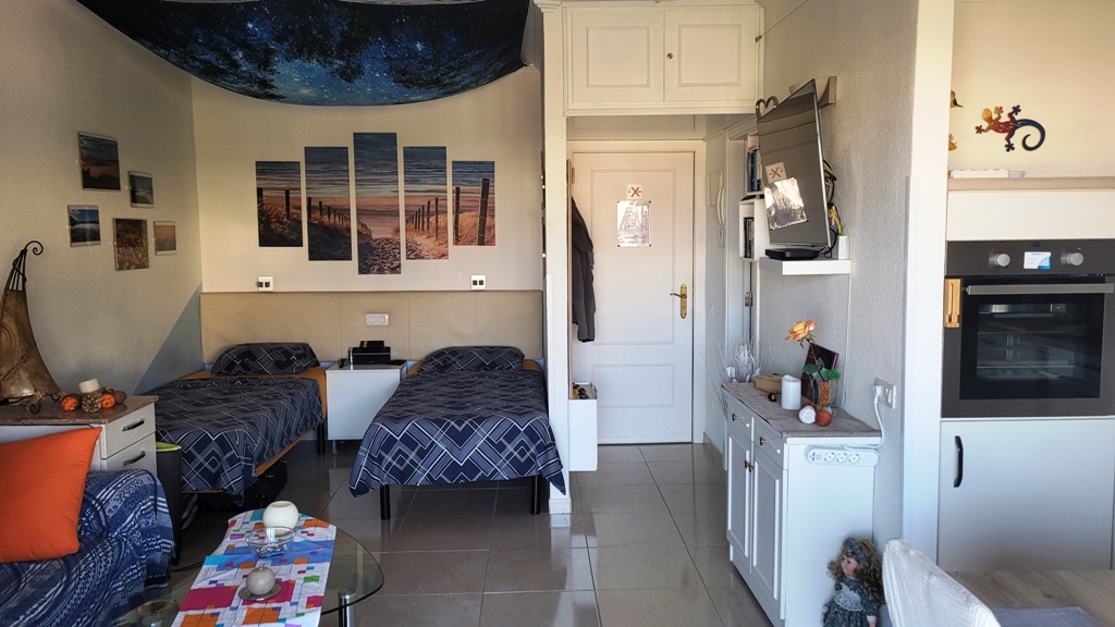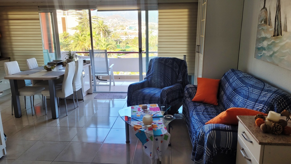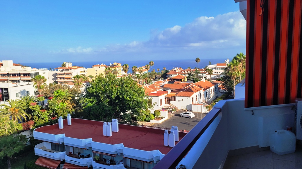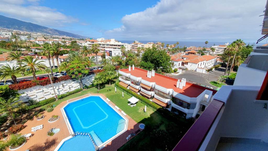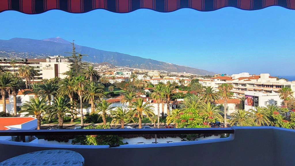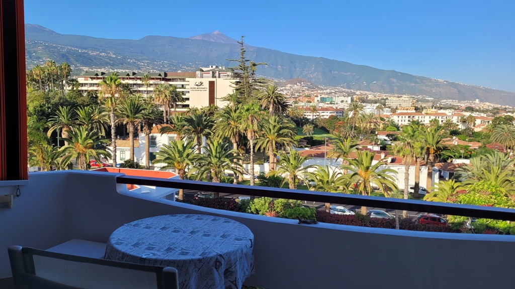 Das Studio befindet sich im 7. OG eines gepflegten Komplex im Ortsteil La Paz. Vom möblierten Balkon haben Sie einen herrlichen Ausblick auf den Teide, das Meer und die umliegenden Ortschaften. Der Balkon ist sehr windgeschützt, so dass man auch im Winter die Abende dort verbringen kann.